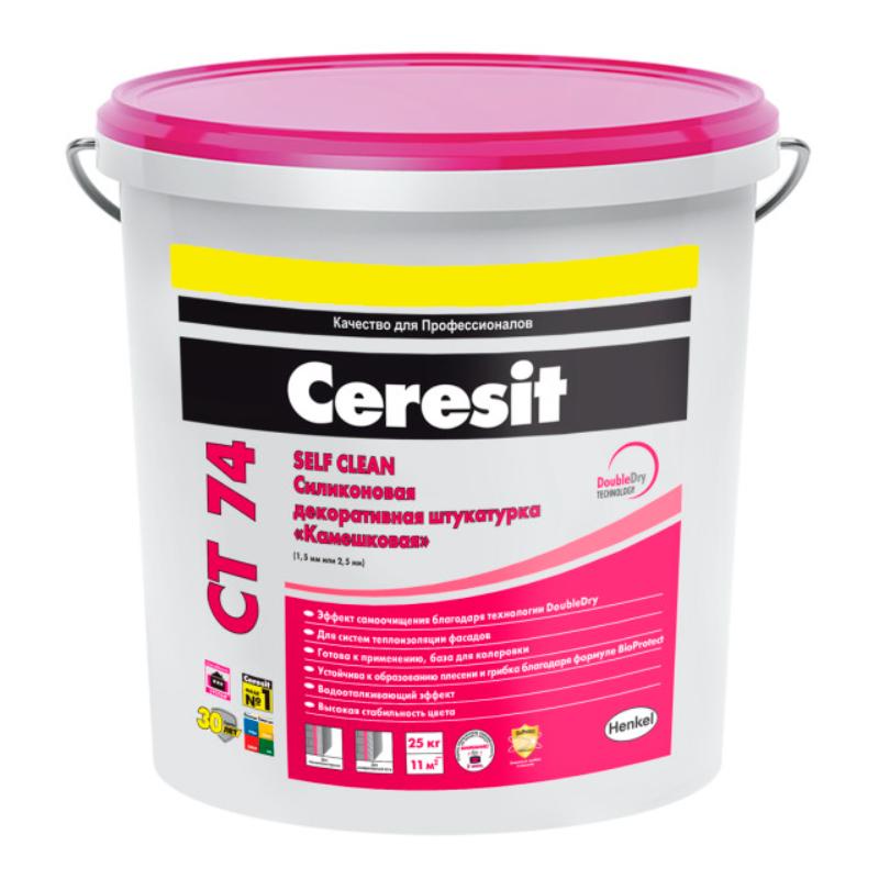 Ceresit CT 74 - это высококачественная силиконовая декоративная штукатурка с фактурой "камешковая", специально разработанная для создания эффектных и устойчивых декоративных покрытий. Этот материал идеально подходит для использования как внутри, так и снаружи зданий на различных поверхностях, таких как бетон, кирпич, традиционные и гипсовые штукатурки, древесностружечные плиты, гипсокартон и другие.